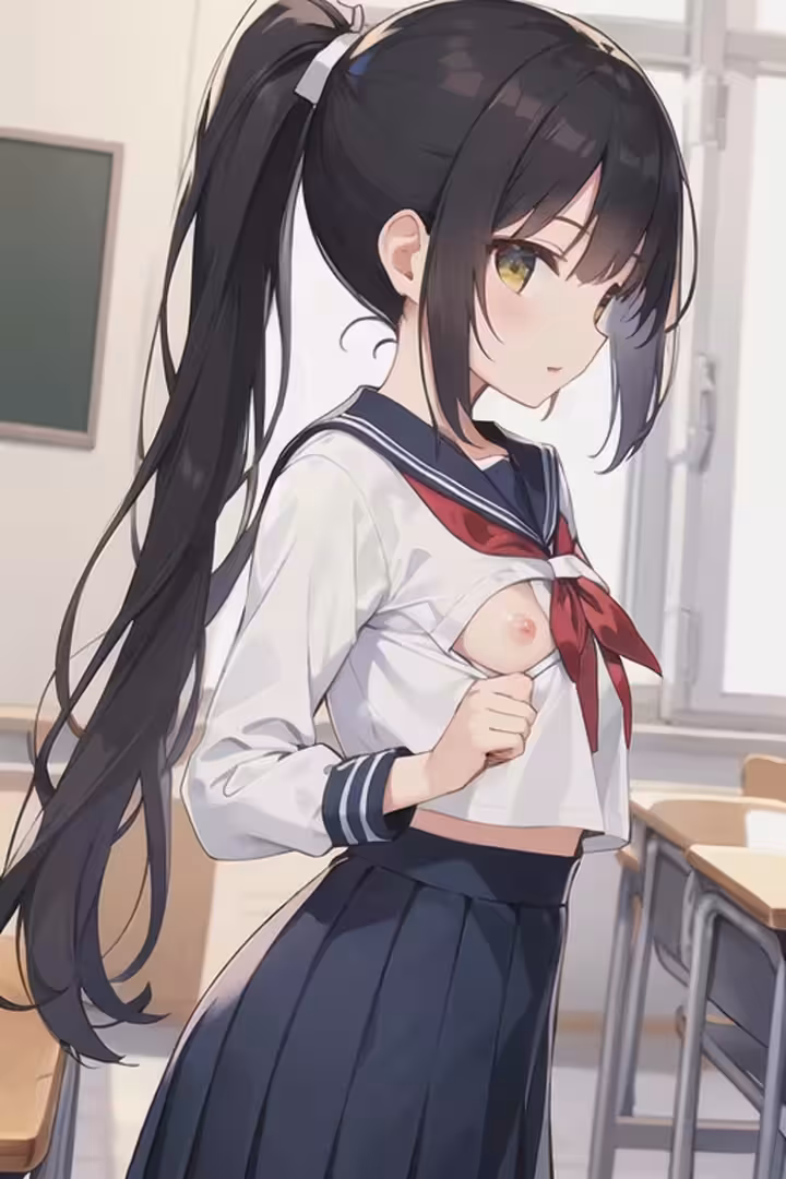 【二次エロ画像/片乳出し】片胸だけ見せる女の子のエロ画像まとめ part9【AI生成エロ画像】