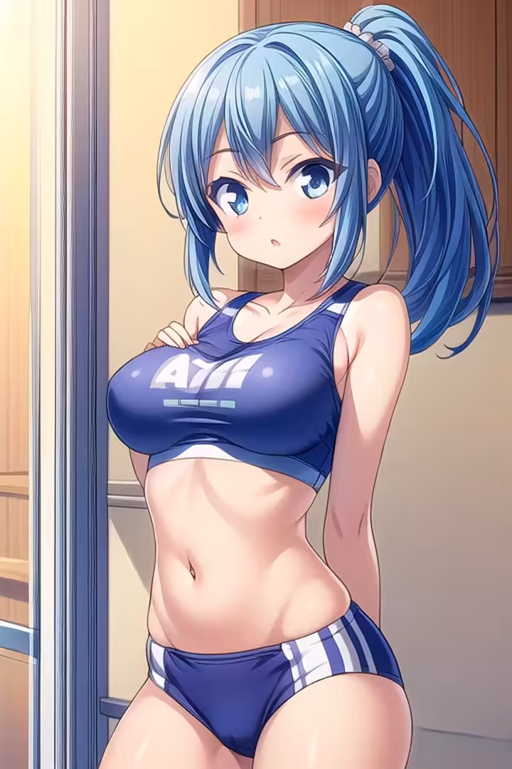【二次エロ画像/青スポブラ】ブルー運動用下着の女の子のエロ画像まとめ part2【AI生成エロ画像】