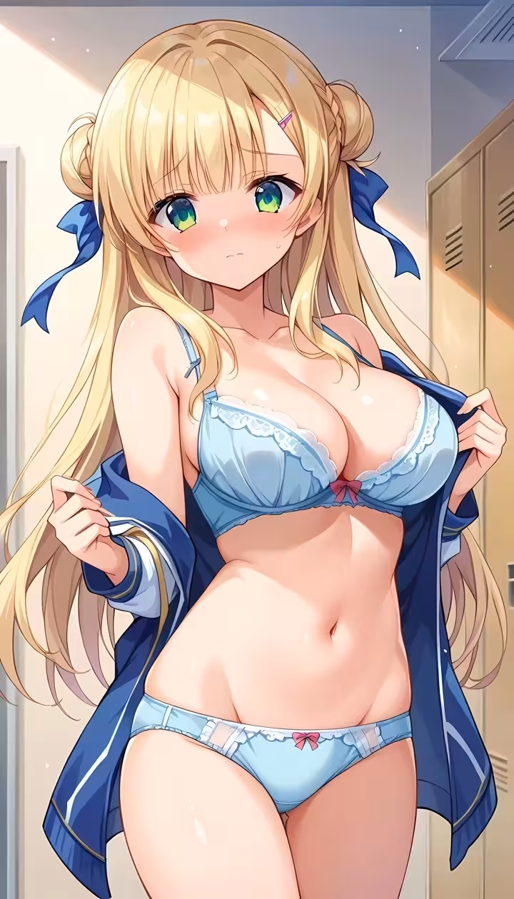 【二次エロ画像/青ブラ】コントラスト映えの白肌青ブラのエロ画像まとめ part1【AI生成エロ画像】