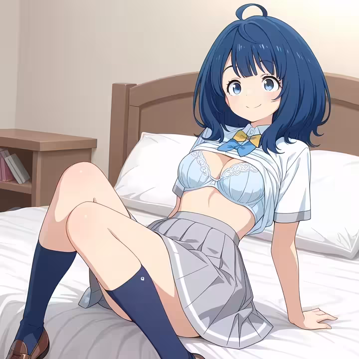 【二次エロ画像/青ブラ】肩食い込みのストラップ青ブラのエロ画像まとめ part20【AI生成エロ画像】