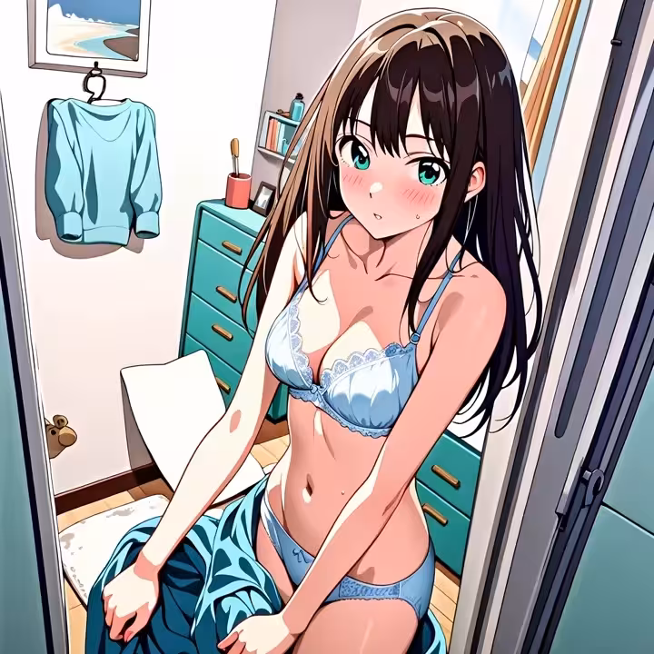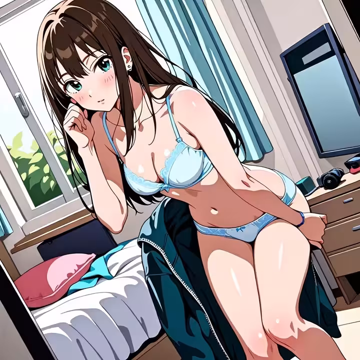 【二次エロ画像/青ブラ】鏡前ポーズの自信青ブラのエロ画像まとめ part45【AI生成エロ画像】