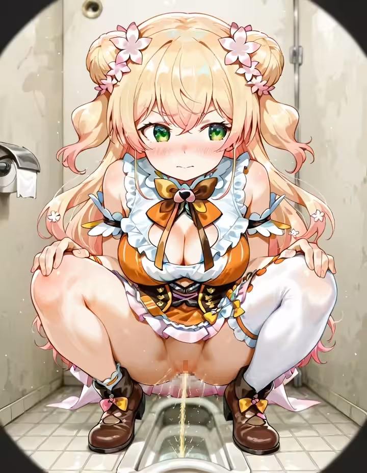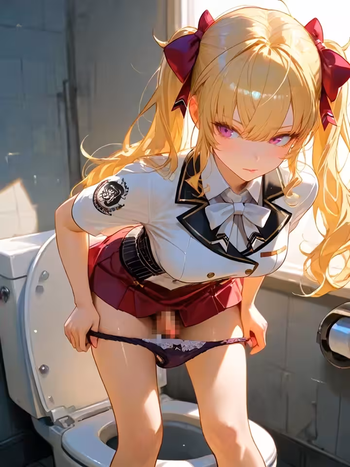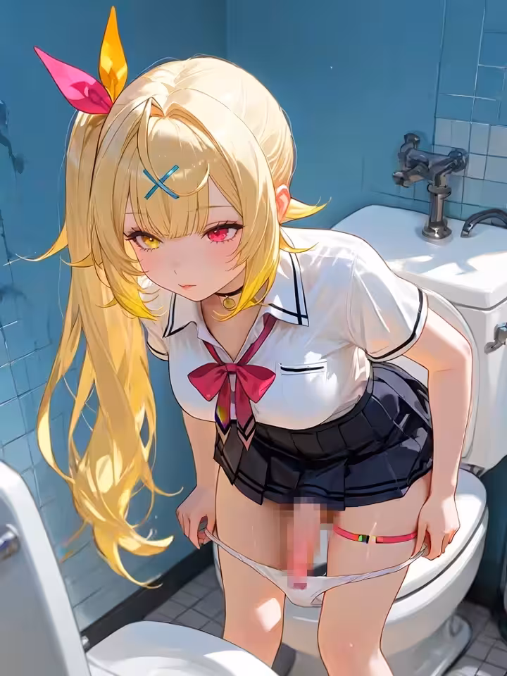 【二次エロ画像/トイレ個室】お手洗い個室内での情事のエロ画像まとめ part9【AI生成エロ画像】