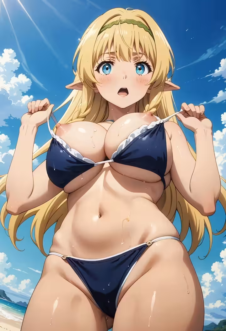 【二次エロ画像/ビキニずらし】水着をずらされる女の子のエロ画像まとめ part1【AI生成エロ画像】