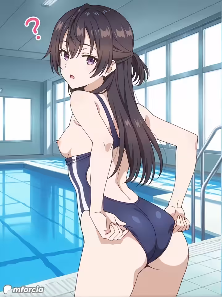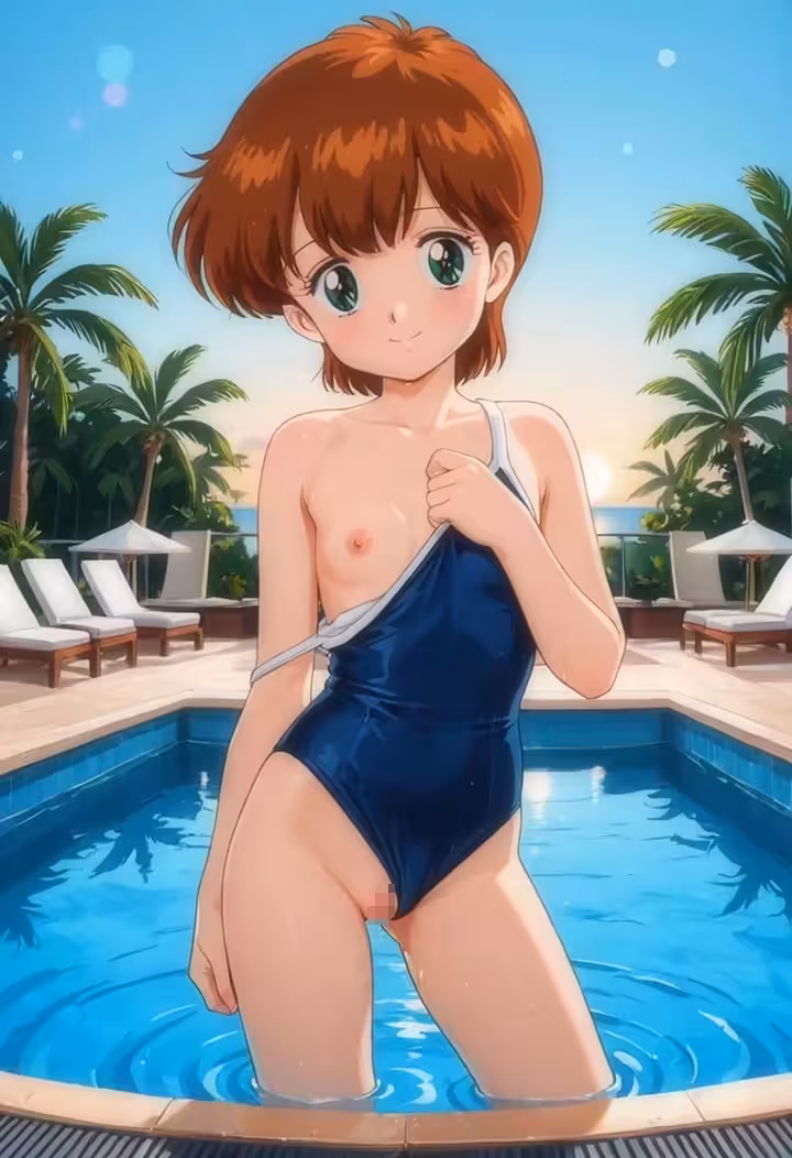 【二次エロ画像/ワンピ水着ずらし】ワンピ水着をはだけられる女の子のエロ画像まとめ part12【AI生成エロ画像】