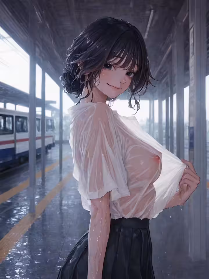 【二次エロ画像/濡れシャツ】濡れて下着が見える女の子のエロ画像まとめ part30【AI生成エロ画像】
