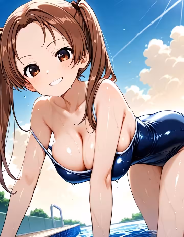 【二次エロ画像/濡れ水着】濡れた水着姿の女の子のエロ画像まとめ part2【AI生成エロ画像】
